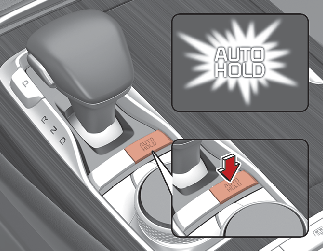 Для отключения функции автоматического удержания, когда автомобиль стоит на месте, нажмите переключатель функции автоматического удержания и одновременно выжимайте педаль тормоза.