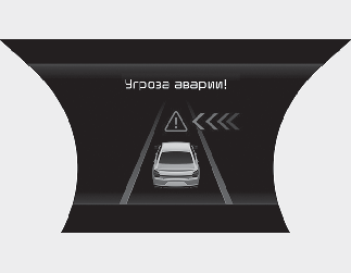 Если высок риск столкновения с движущимся впереди транспортным средством, пешеходом или велосипедистом, включается функция помощи в управлении, которая помогает водителю, начавшему маневр, предотвратить столкновение.