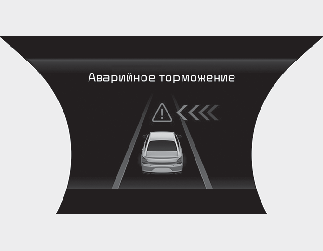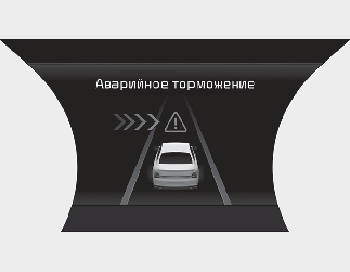 Чтобы предупредить водителя об автоматическом аварийном торможении, на приборной панели отобразится сообщение «Emergency Braking» (Аварийное торможение), будет подан звуковой сигнал, а руль завибрирует (при наличии).