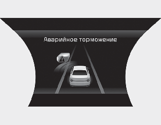 При возникновении ситуации, требующей экстренного торможения, функция применит максимальное торможение, чтобы избежать столкновения с транспортным средством, пешеходом или велосипедистом.
