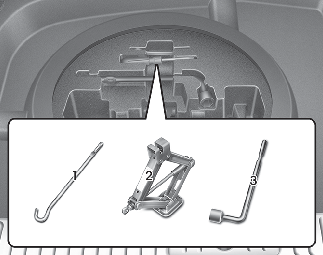 Домкрат, рукоятка домкрата и колесный гаечный ключ хранятся в багажном отсеке.