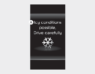 Если во время движения загорается индикатор предупреждения о гололеде на дороге, необходимо управлять автомобилем более внимательно и осторожно, воздерживаясь от чрезмерного повышения скорости, резкого ускорения, внезапного торможения, крутых поворотов и т. д.