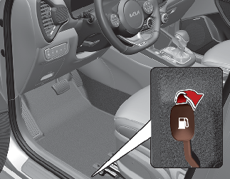 Чтобы открыть крышку горловины топливного бака, потяните вверх механизм открывания крышки горловины топливного бака.