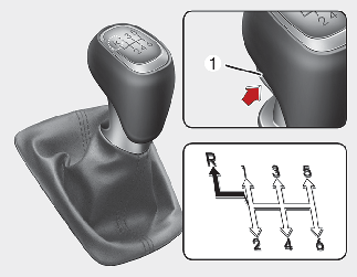 Кнопка (1) должна быть нажата при перемещении рычага переключения передач в положение заднего хода.