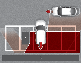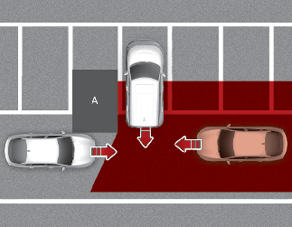 Возможности функции предотвращения столкновения с объектами, движущимися в поперечном направлении позади автомобиля, могут быть ограничены при движении задним ходом в диагональном направлении, и она может не обнаружить транспортное средство, приближающееся слева и справа. Если это произойдет, функция может не предупредить водителя или не применить тормоза, когда это будет необходимо.
