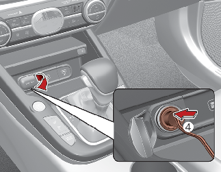 С помощью кабеля и разъемов (4) выполните подключение между компрессором и розеткой питания автомобиля.