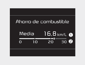 Margen de consumo de combustible: 0 ~ 99,9 km/L, L/100 km o MPG