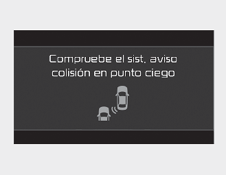 Si se ha producido un problema con el aviso de colisión en punto ciego, aparecerá un mensaje de advertencia y el testigo del interruptor se apagará. La función se desactivará automáticamente.