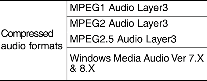 Для файлів у форматі MP3/WMA зі стисненими даними може існувати різниця в якості звуку залежно від бітрейту. (Що вищий бітрейт, то кращою буде якість звучання.)
