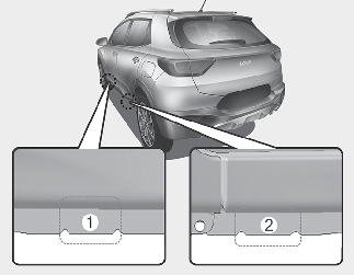 Sitúe el gato en la posición delantera (1) o trasera (2), más cercana a la rueda que se cambia. Coloque el gato en la zona designada debajo del bastidor. Las posiciones para el gato son placas soldadas al bastidor con dos lengüetas y un punto de apoyo para el gato.