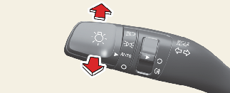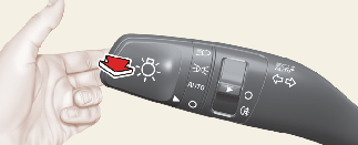 W celu włączenia świateł drogowych popchnąć dźwignię w kierunku od siebie (światła mijania muszą być włączone). Przyciągnąć do siebie w celu włączenia świateł mijania.
