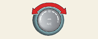 Po przekręceniu pokrętła temperatura wzrośnie lub spadnie o 0,5°C / 1°F. Po ustawieniu do najniższej wartości temperatury klimatyzacja będzie działać stale.
