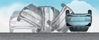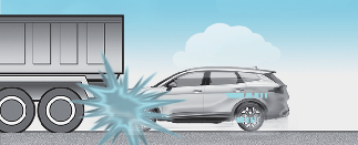 緊急煞車會降低車輛前部,導致車輛前部「重疊」在某個離地間隙較高的車輛底部。 空氣囊在這種「底部重疊」情況中不展開,因為「底部重疊」碰撞會顯著降低感測器檢測到的減速力。 |