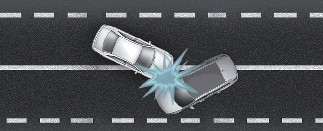 在成角度的碰撞中,碰撞力會將乘客送往安全氣囊不能提供任何保護的方向,此時感測器可能不展開安全氣囊。 |