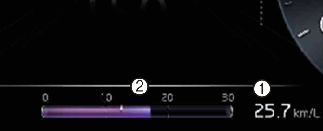 車速超過約 10km/h (6 mph)時,顯示最後幾秒內的瞬間燃油消耗率。