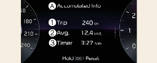 要手動重設資訊,請在檢視累積資訊時按住方向盤上的 OK 按鈕。