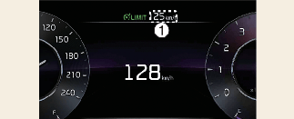 設定的速限 (1) 將顯示在儀表板上。如果您想超過預設的速限,將油門踏板踩到壓力點以上以啟動強制降檔裝置。