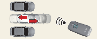 僅在智慧鑰匙距離車輛 4 m (13 ft.) 以內時,遙控操作功能才會運行。按下智慧鑰匙上的前進或後退按鈕而車輛無任何動作時,檢查與車輛的距離,然後再按一次按鈕。