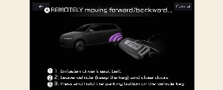 使用方法 (1) 遙控前進時,將識別為離開的情況,車輛移動 4 m (13 ft.) 以檢查是否有行人、動物或物體在車輛周圍。確認後,根據前方狀況控制方向盤。