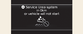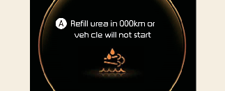 在這種情況下,需儘快補充尿素溶液罐。尿素溶液罐中剩餘的尿素溶液太低時,會顯示警告訊息「請補充尿素溶液 000 km 或車輛不能啟動」連同 SCR 警告燈(