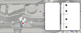 至於柴油引擎,油量應在 C 範圍。如果油量在 D 範圍,則應補充機油直到油量到達 C 範圍。