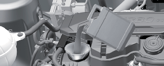 使用漏斗協助注入新機油以免機油濺灑到引擎室上。