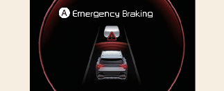 Para avisar al conductor de que se asistirá con la frenada de emergencia, se mostrará el mensaje de advertencia, se emitirá una advertencia acústica y vibrará el volante (si está equipado). La asistencia a la frenada se activará y ayudará a evitar que la colisión con un vehículo, peatón o ciclista.