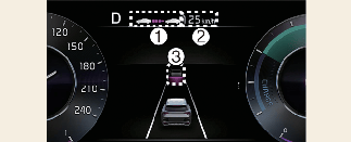 Si hay un vehículo que le precede y se muestra la distancia seleccionada del vehículo.
