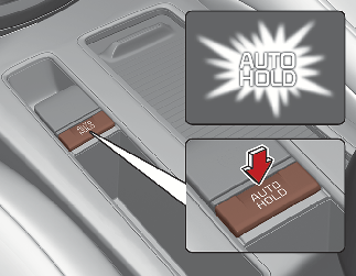 في حالة الضغط على دواسة الوقود مع وجود ذراع نقل الحركة في الوضع D (القيادة) أو الوضع اليدوي، فإن زر Auto Hold سيُحرر تلقائيًا وستبدأ السيارة في التحرك. يتغير المؤشر من الأخضر إلى الأبيض مشيرًا إلى وجود التوقف التلقائي في وضع الاستعداد وتحرير فرامل الانتظار الإلكترونية.