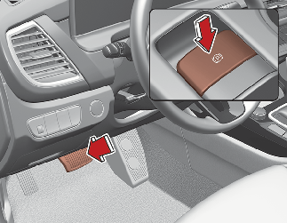 في حالة إضاءة مُبين AUTO HOLD (التوقف الآلي) باللون الأصفر، فهذا يعني أن وظيفة Auto Hold (التوقف الآلي) لا تعمل بشكل سليم. توجّه بالسيارة إلى ورشة متخصصة وافحص النظام. تُوصي Kia بزيارة أحد شركاء خدمة/وكلاء Kia المعتمدين.