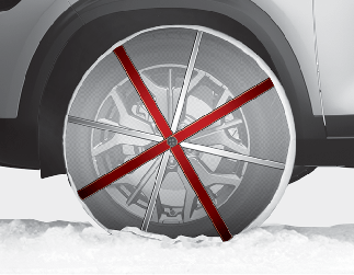 يجب استخدام السلاسل من النوع القماشي في السيارة مع الإطارات مقاس 17 بوصة (215/60R17) و18 بوصة (215/55R18).