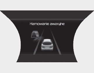 Po zatrzymaniu pojazdu w wyniku hamowania awaryjnego w zestawie wskaźników zostanie wyświetlony komunikat ostrzegawczy „Drive carefully” (Jedź ostrożnie).