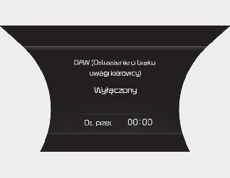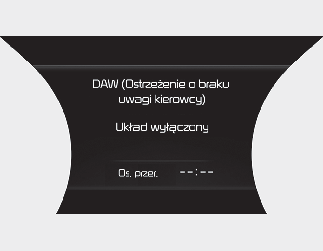 Jeśli w menu „User Settings (Ustawienia użytkownika) (wyświetlacz LCD) lub Settings (Ustawienia) → Vehicle (Pojazd) (ekran systemu multimedialnego)” zostanie usunięte zaznaczenie opcji „Inattentive Driving Warning” (Ostrzeżenie o spadku koncentracji), pojawi się komunikat „System Off” (System wyłączony).