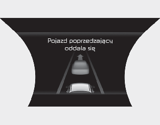 Gdy pojazd poprzedzający rusza, funkcja powiadomienia o ruszeniu pojazdu poprzedzającego informuje o tym kierowcę, wyświetlając w zestawie wskaźników komunikat „Leading vehicle is driving away” (Pojazd poprzedzający rusza) i włączając sygnał dźwiękowy.