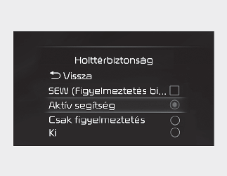 Ha az „Off“ (ki) opció van kiválasztva, a Holttéri ütközés-elkerülési segéd ki van kapcsolva
