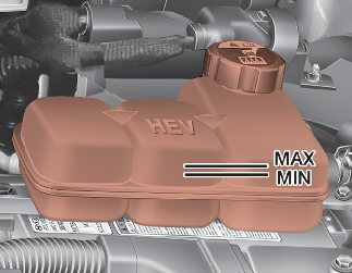 A motor hideg állapotában a hűtőfolyadék szintjének a kiegyenlítő tartályon lévő MAX és MIN jelzések közé kell érnie.