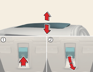 • דחוף את מתג גג השמש לפנים כאשר זגוגית גג השמש פתוחה בהטיה, זגוגית גג השמש תיסגר.