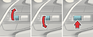 בעקבות הסטה של המתג (+) כלפי מעלה, או הסטה של המתג (-) כלפי מטה, מהירות הנסיעה תיקבע לערך של מהירות הנסיעה הנוכחית כפי שהיא מוצגת בלוח המחוונים.