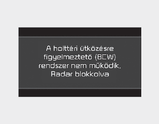 Ilyen esetben a 'Holttér-biztonság' rendszer kikapcsol. A 'Radar blokkolva' figyelmeztető üzenet jelenik meg a műszercsoporton.