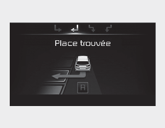 Si la fonction a déjà reconnu l’espace de stationnement avant l’activation de l'assistance au stationnement, vous pouvez voir « Recherche de stationnement » ou « Place trouvée » s'afficher.