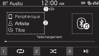 • Si vous avez plusieurs périphériques de stockage de médias, appuyez sur le bouton [MEDIA] et sur le bouton [2] pour sélectionner BT Audiodans la fenêtre de sélection des médias.