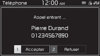 Pour répondre à l'appel, appuyer sur le bouton [1] du panneau de commande pour sélectionner Accepter.