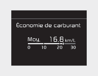 Le mode ordinateur de bord affiche des informations concernant les paramètres de conduite du véhicule, dont la consommation de carburant, des informations sur le totalisateur partiel et la vitesse du véhicule.