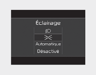 Vous pouvez activer ou désactiver la fonction Essuie-glace/Affichage de l'éclairage dans le mode Réglages utilisateur de l'écran LCD du groupe d'instruments.