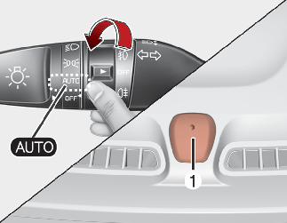 Lorsque le commutateur d’éclairage est en position d’éclairage automatique, les feux arrière et les phares s’allument ou s’éteignent automatiquement en fonction du niveau de luminosité à l’extérieur du véhicule.