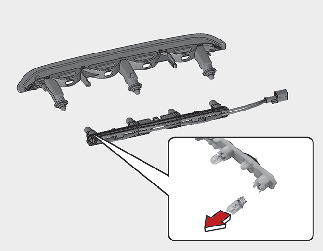 Faire sortir l'ensemble de feu stop surélevé et débrancher le connecteur.