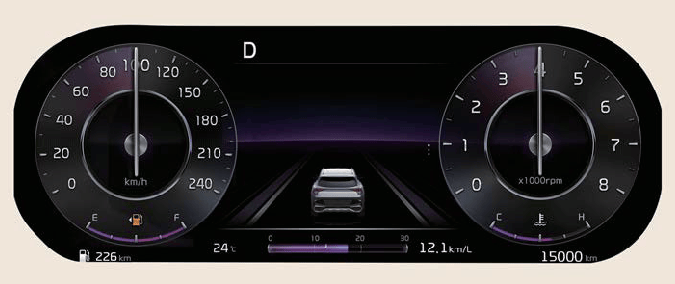 Le type A est le thème de base du combiné LCD complet et offre différents styles graphiques en fonction du mode de conduite.