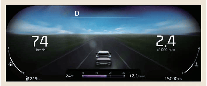 Vous pouvez modifier le thème en sélectionnant « Véhicule → Réglage du combiné d’instruments → Sélection du thème » sur le menu.