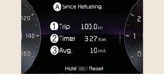 Si vous appuyez sur le bouton "OK" pendant plus d'une seconde après affichage de l'information depuis le dernier ravitaillement, les informations seront réinitialisées.