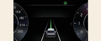 Lorsque les deux marquages de voie sont détectés, les lignes de voie sur le combiné d’instruments passent du gris au blanc.